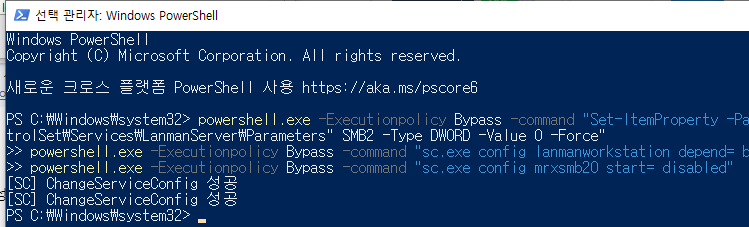 2. Powershell , SMB 2/3 비활성화 !